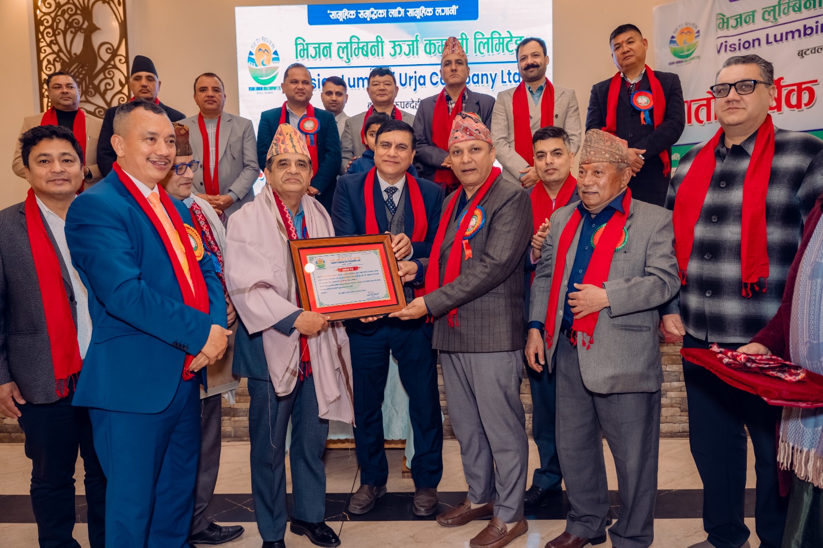 भिजन लुम्बिनी ऊर्जा कम्पनीबाट भण्डारी सम्मानित