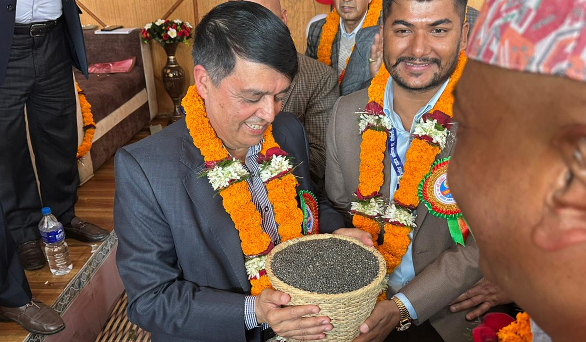 काठमाडौं: धादिङको रैथाने उत्पादन कालो मास बिहीबार नीलकण्ठ नगरपालिकामा आयोजित एक समारोहको केन्द्रबिन्दु बन्न पुग्यो । चोयाले बुनेको चिटिक्कको डालीमा राखिएको धादिङको प्रसिद्ध कालो मास अतिथिलाई उपहारस्वरूप प्रदान गरेपछि ‘डालीभरि मास’ कार्यक्रमस्थलमा मात्र होइन, जिल्लाभर नै चर्चा चल्यो ।