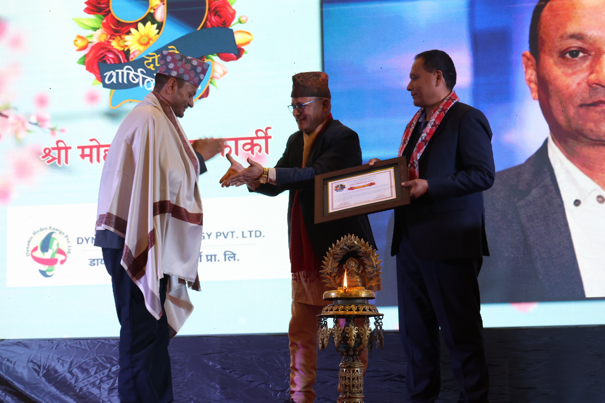 होटेल एभरेष्टमा आयोजित विशेष समारोहमा पूर्व ऊर्जा, जलस्रोत तथा सिँचाइ मन्त्री कुलमान घिसिङ तथा इनर्जी नेपाल मिडिया हाउसका अध्यक्ष विकास थापाले सम्मानित व्यक्तित्वहरूलाई सम्मानपत्र प्रदान गर्दै सम्मान गरे ।