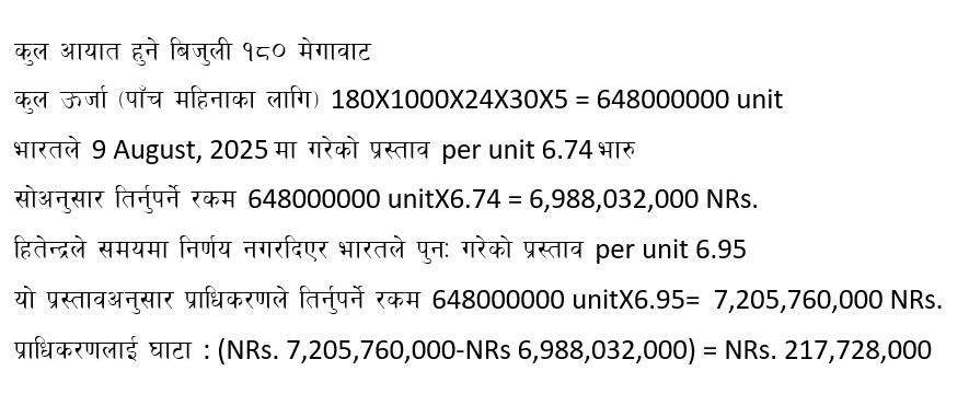 पीटीसी इण्डियाको सस्तो भएकाले त्यति बेलाका पनि कार्यकारी निर्देशक हितेन्द्रदेव शाक्यले प्रतियुनिट ६.७४ (भारु) मा खरिद गर्ने निर्णय २०८२ भदौ १६ गते गरेर सञ्चालक समितिमा लैजान एजेन्डा नै बनाए (हेर्नुहोस् :