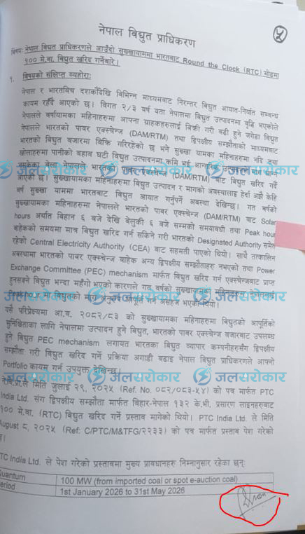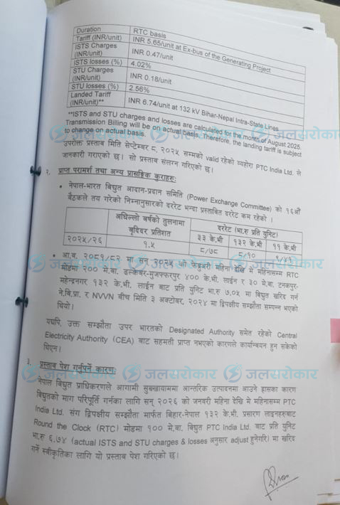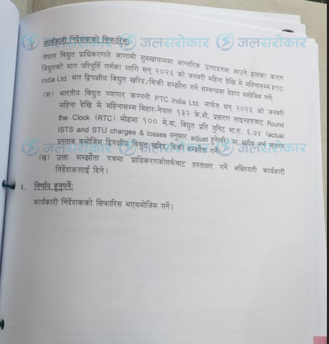 काठमाडौं : नेपाल विद्युत् प्राधिकरणका कार्यकारी निर्देशक हितेन्द्रदेव शाक्यले भारतको पीटीसीसँग प्रतियुनिट ६.७४ भारुमा बिजुली किन्ने निर्णय प्राधिकरण सञ्चालक समितिबाट पारित गराउन आफैले प्रस्ताव लगेको खुलेको छ ।
