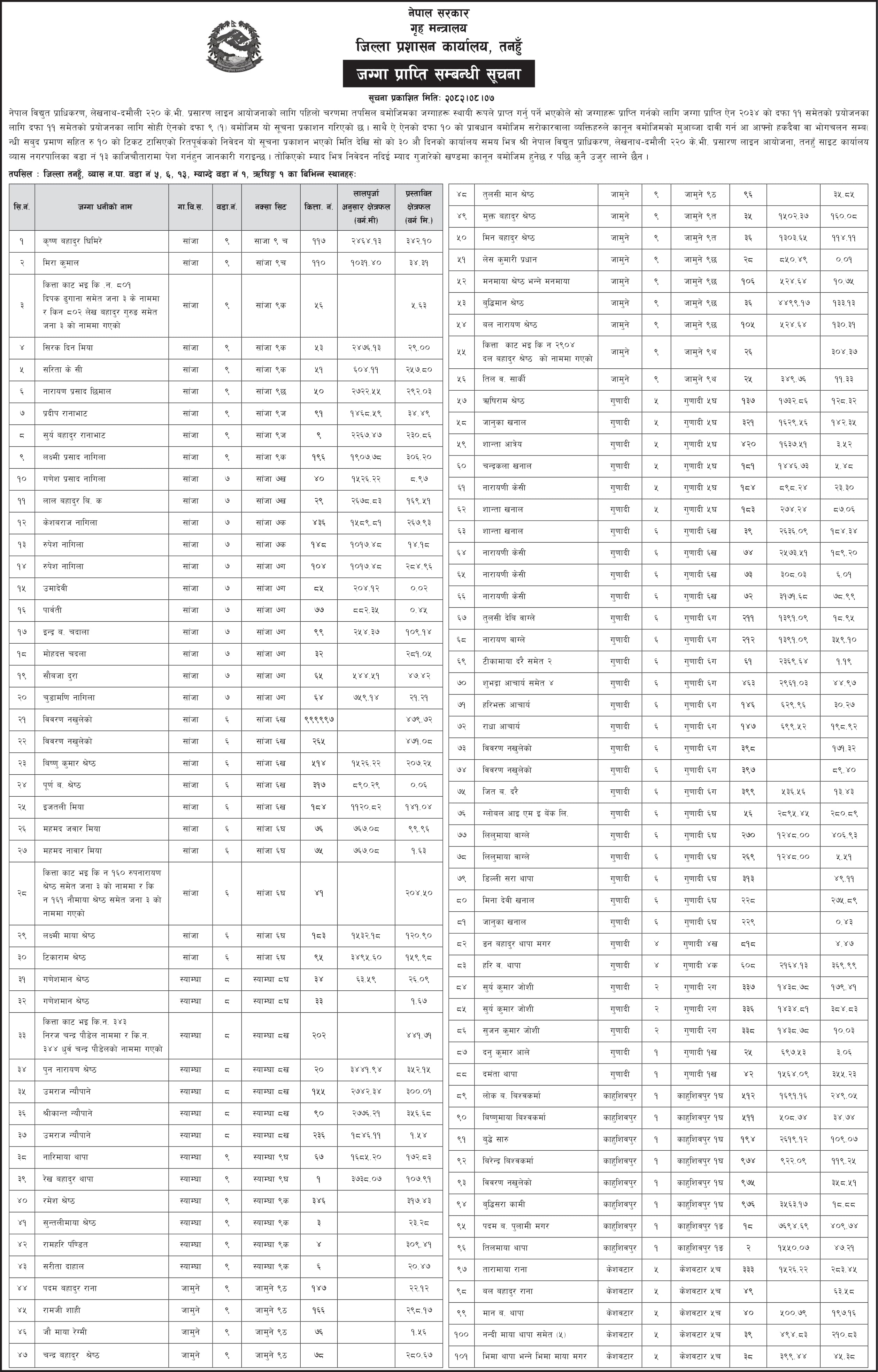 जिल्ला प्रशासन कार्यालय तनहुँका अनुसार जग्गाधनी वा सरोकारवाला व्यक्तिले आफ्नो हक–दावी वा भोगचलन प्रमाणसहित रु १० को टिकट टाँसिएको रितपूर्वक निवेदन सूचना प्रकाशित भएको मितिबाट ३० दिनभित्र पेश गर्नुपर्ने छ।
