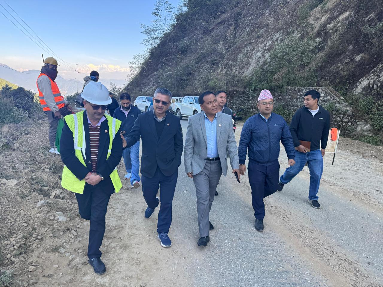 मन्त्री घिसिङद्वारा कान्ति राजमार्गको स्थलगत निरीक्षण