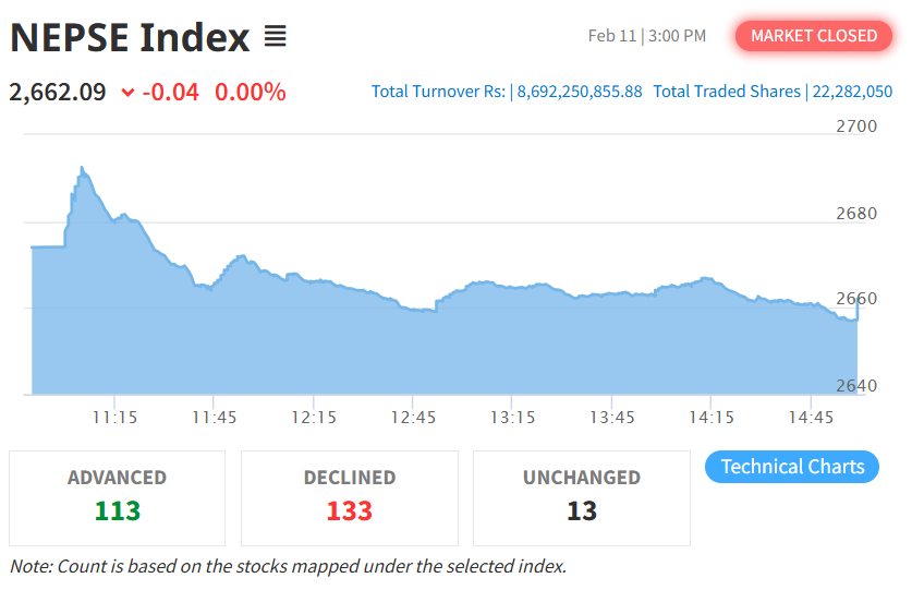 नेप्से करिब स्थिर, कारोबार रकम सामान्य वृद्धि