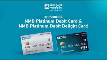 काठमाडौं : एनएमबि बैंकले आफ्ना ग्राहकहरूलाई थप सुविधा र अझै उत्कृष्ट बैंकिङ्ग अनुभव प्रदान गर्ने उद्देश्यले दुईवटा नयाँ भिसा प्लाटिनम डेबिट कार्डहरु सार्वजनिक गरेको छ। बैंकले ग्राहकहरूको बदलिँदो जीवनशैली र आवश्यकतालाई ध्यानमा राख्दै 'प्लाटिनम डेबिट डिलाइट' र 'प्लाटिनम डेबिट' कार्ड सार्वजनिक गरेको हो।