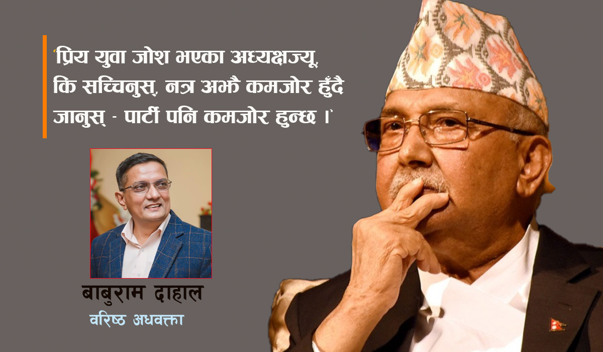 ओलीलाई वरिष्ठ अधिवक्ता दाहालका ११ सुझाव : ‘सच्चिनुस्, नत्र पार्टी झन् कमजोर हुन्छ’