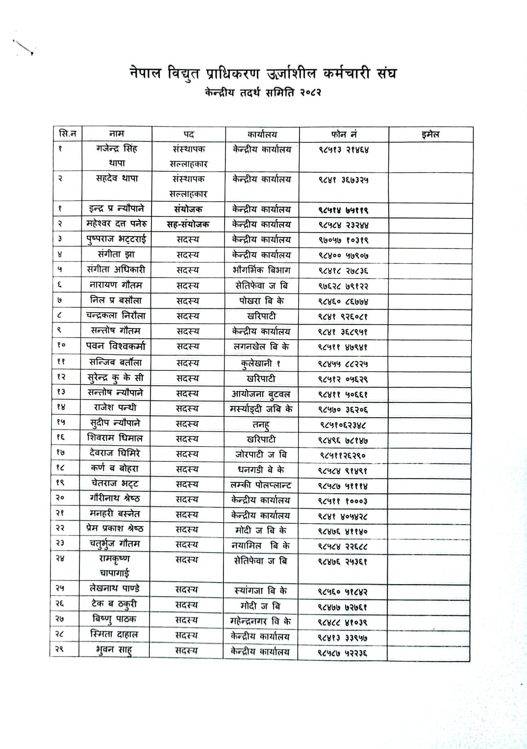 संघले हालका लागि केन्द्रीय तदर्थ समिति २०८२ गठन गरेको छ। जसमा गजेन्द्र सिंह धापा र सरद धापा संस्थापक सल्लाहकार, इन्द्रप्रसाद न्यौपाने संयोजक र महेश्वर दत्त पन्त सहऔसंयोजक रहेका छन्। उक्त समितिमा विभिन्न विभाग, शाखा र प्रदेश कार्यालयबाट प्रतिनिधित्व हुने गरी ४७ जना सदस्यहरू समावेश छन्।